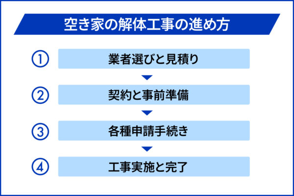 ここからは、空き家解体工事を進めるための手順を4つに分けて解説します。